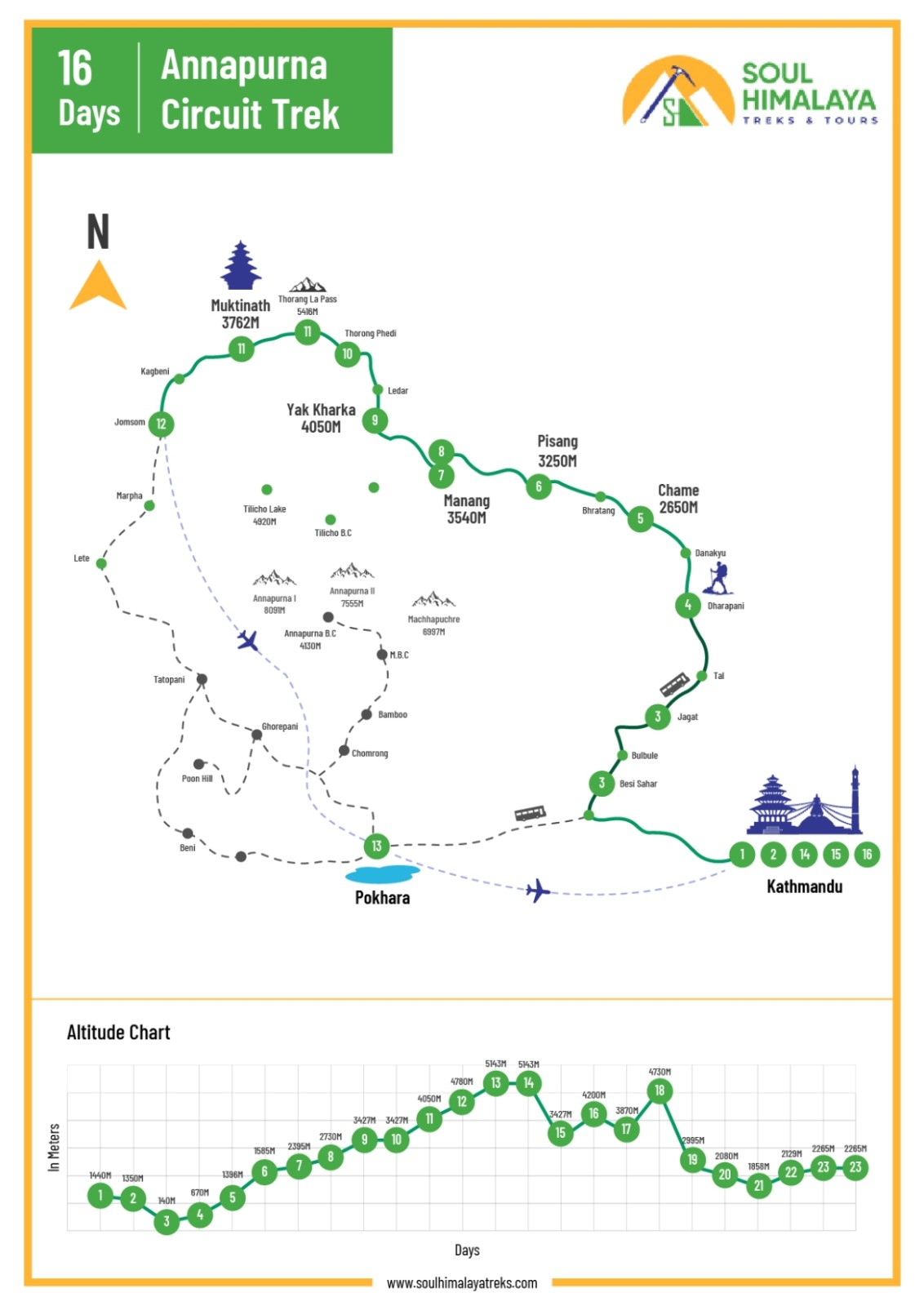 Annapurna Circuit trek takes you at the height of 5,416 meters from sea level.
